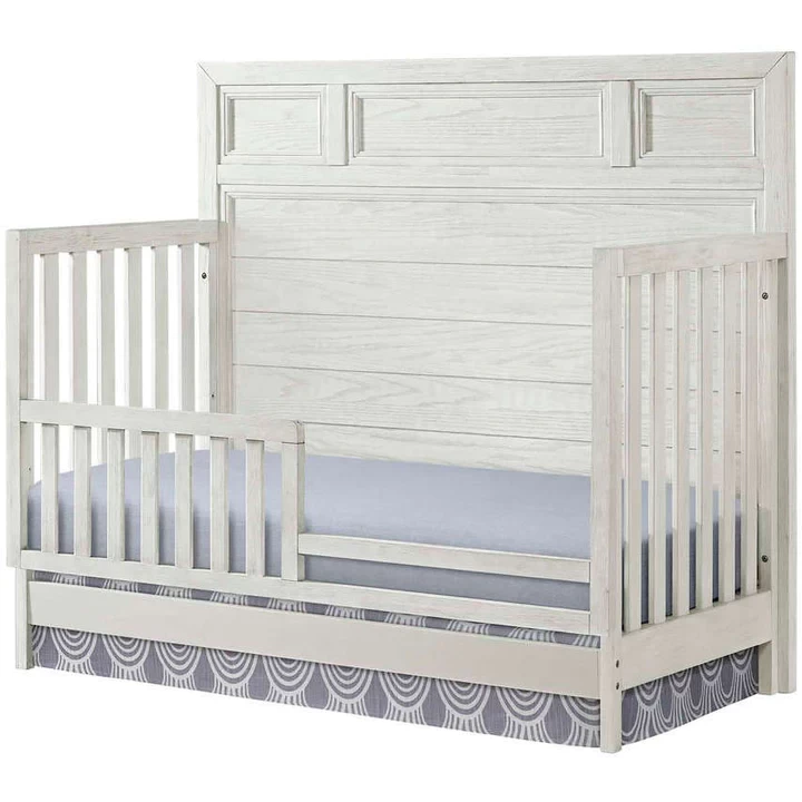The Foundry Crib converts to a Daybed, Toddler Bed, and Full Bed. Toddler Rail and Full Size Bed Rails sold separately.