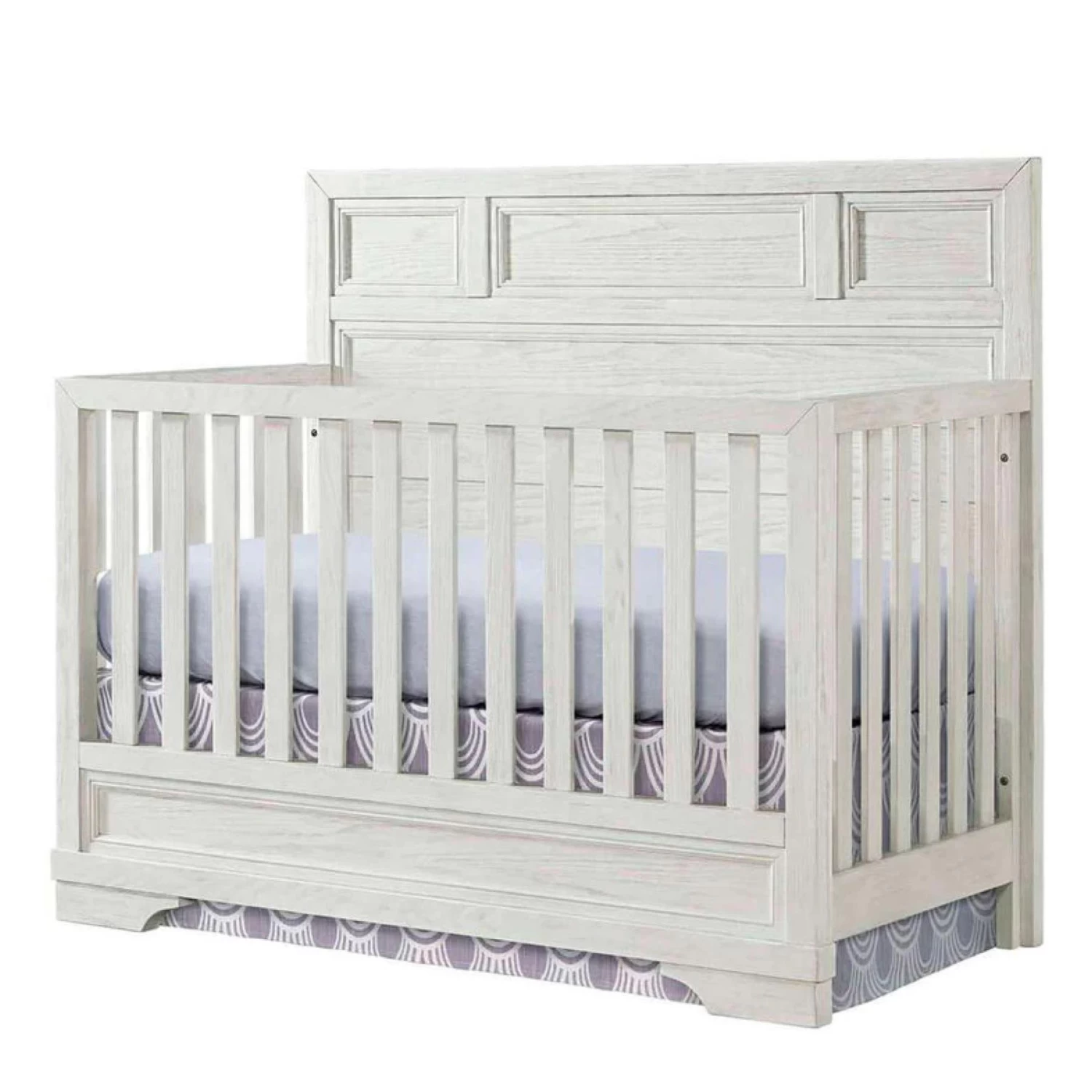 The Foundry Collection combines modern industrial style with classic wood designs. The White Dove finish and carved details offer timeless sophistication with a modern twist that will serve your growing child for years to come.Â