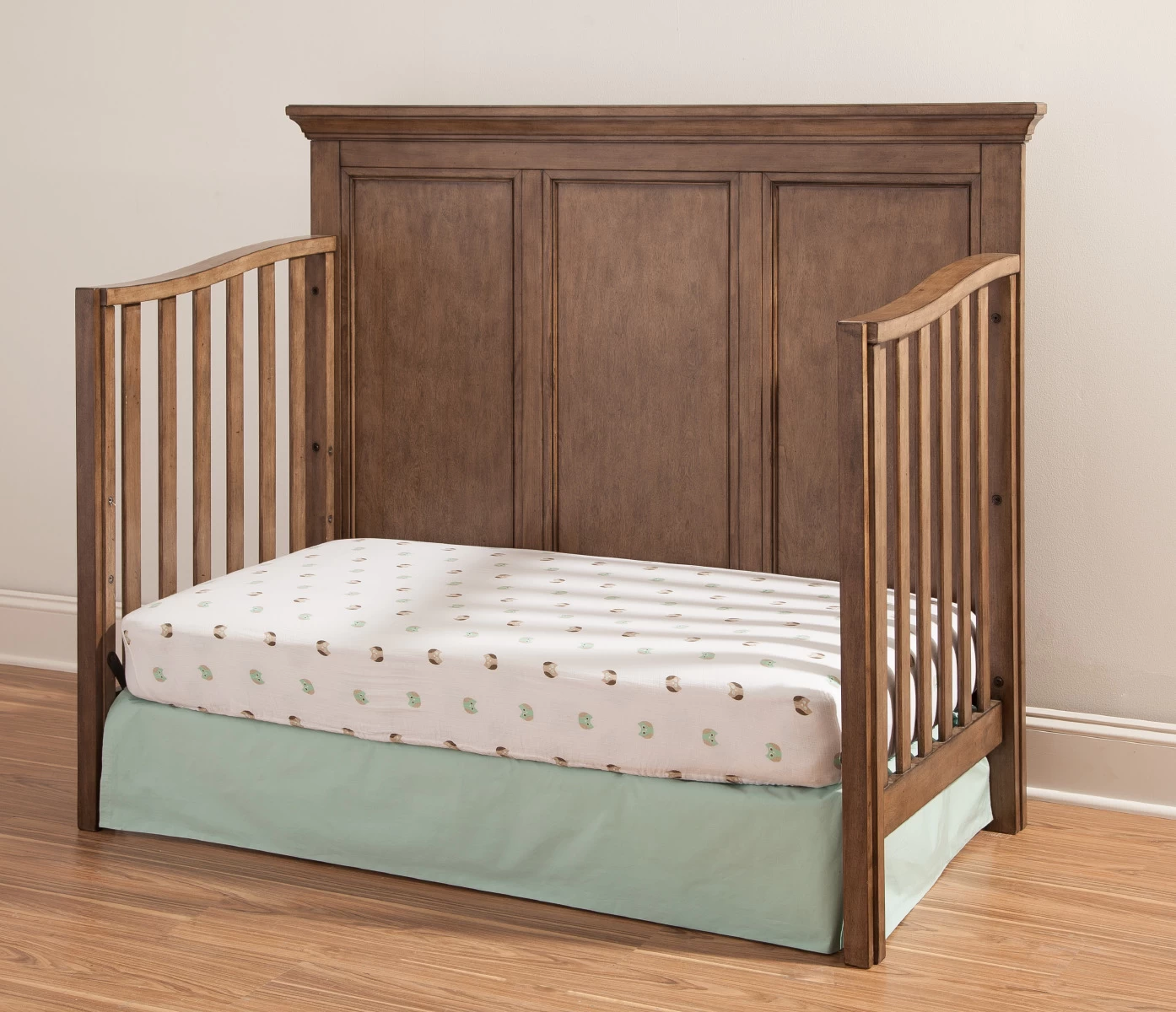 The Hanley crib’s vintage styling and intricate spindle and molding detailing create and elegant yet playful look for your child’s room. Hanley 4-in-1 Convertible Crib from Westwood Design easily converts to toddler bed, day bed, and full-sized bed. Highlighted with a pine construction, wooden slats, and a paneled back, it brings a charming design to your child’s room.Â