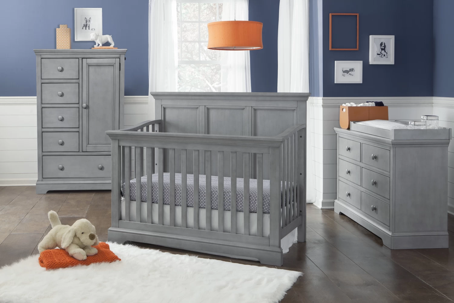 The Hanley crib’s vintage styling and intricate spindle and molding detailing create and elegant yet playful look for your child’s room. Hanley 4-in-1 Convertible Crib from Westwood Design easily converts to toddler bed, day bed, and full-sized bed. Highlighted with a pine construction, wooden slats, and a paneled back, it brings a charming design to your child’s room.Â