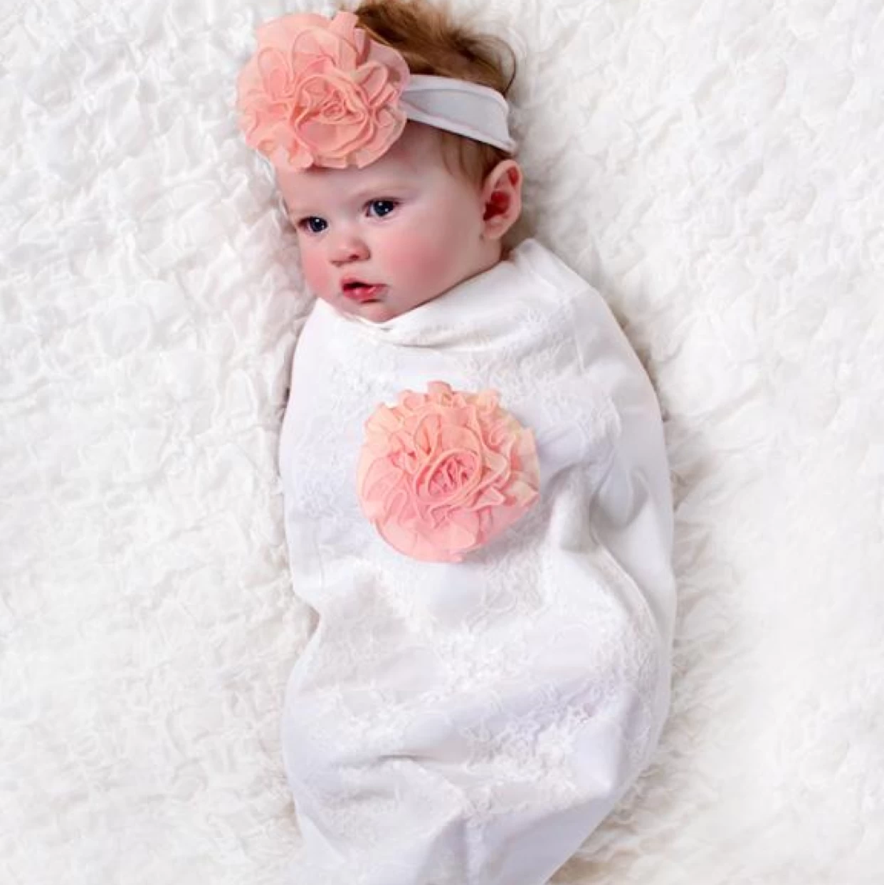 Simply stretch on this adorable Cozy Cocoon and your little darling will look totally fabulous in this soft and cozy velour pink headband set. Gorgeous & fashionable swaddling. No ties, no snaps, no buttons, no straps, slips onto baby like a sock! Wide stretch collar for easy on easy off.